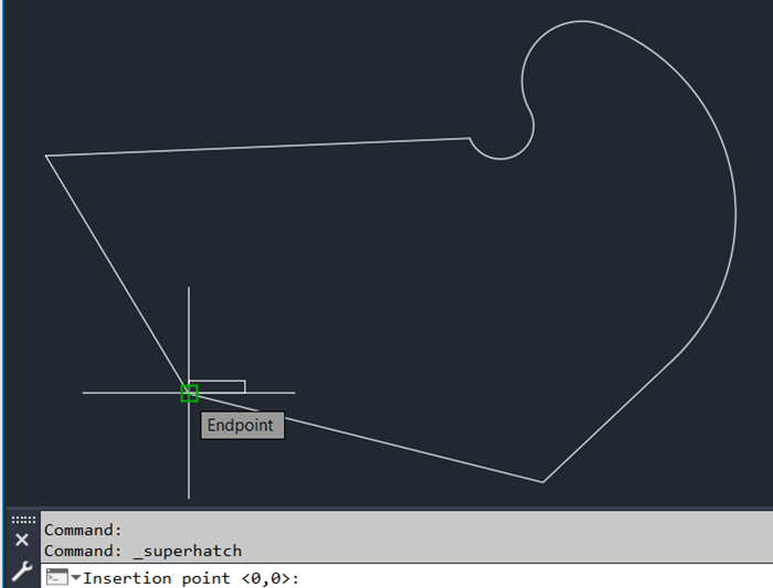 - Pick a point inside the boundary where you want your hatch and press <Enter> to finish the command.