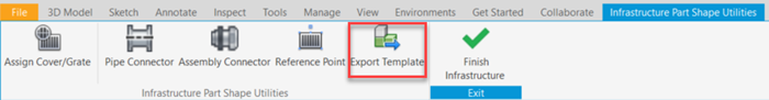 From the ‘Environments’ tab of the Ribbon in Inventor, access ‘Infrastructure Part Shape Utilities’.