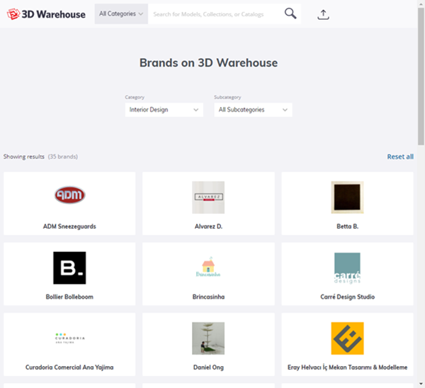 In keeping with the theme, there are a couple of updates that will help get your brand (and products) in front of the right users. SketchUp Pro is introducing a new Brand Page to help you navigate the 1,900 brands on 3D Warehouse. Users can browse to find the brand they’re looking for, search and filter brands by category and subcategory, and more options are still to come!
