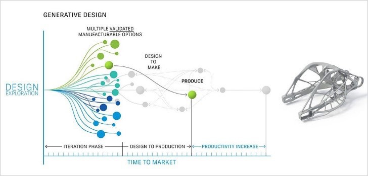 Generative Design is a toolset and process for design exploration. You can enter your design objectives into Generative Design, alongside parameters such as performance requirements, materials, manufacturing methods and the cost constraints. The toolset then quickly generates, utilizing the cloud and numerous design alternatives, allowing you to explore all working outcomes.